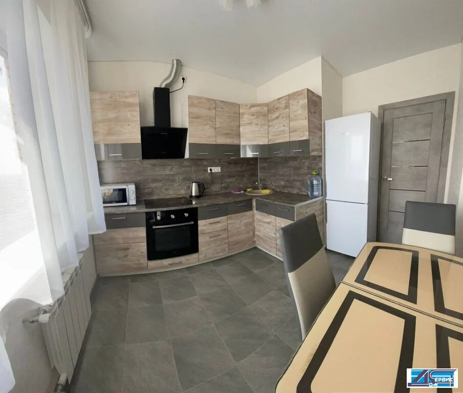 Отличное состояние. Все необходимое для комфортного проживания в квартире имеется: холодильник, электрическая варочная панель, духовой шкаф, микроволновая печь, вытяжка, новая стиральная машинка, кондиционер, телевизор. Кровать 160х200 с новым ортопедическим матрасом, два комода, диван, в коридоре большой встроенный шкаф.